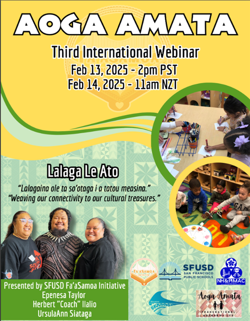 On February, 13th at 2pm, Ms.Epenesa Taylor, Herbert "Coach" Wylie Ilalio and UrsulaAnn Siataga will be presenting at the 3rd AOGA AMATA International Webinar! The team is honored to present on Samoan Language in Early Education in San Francisco Unified School District! The presentation will be conducted in Samoan and English, livestreamed from AOGA AMATA Facebook page. |
