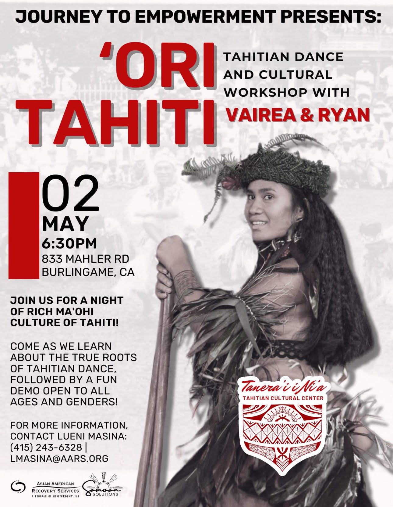 Come as we learn about the true roots of Tahitian Dance, followed by a fun demo open to all ages and genders!