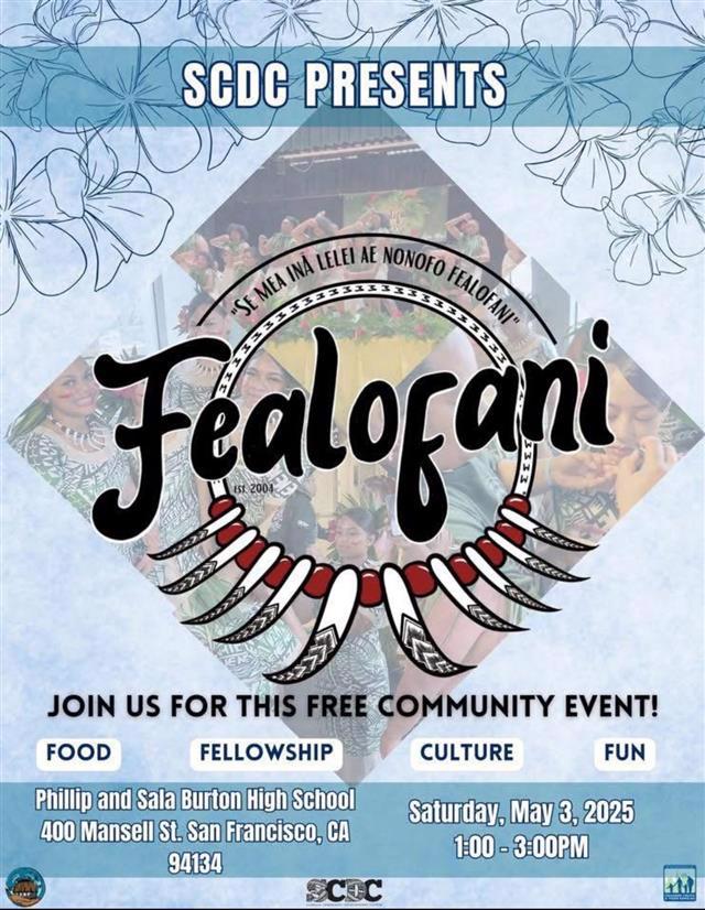 One of our favorite times of the year! Samoan Community Development Center presents their Annual Fealofani Event! This event will showcase various students organizations and schools in the Bay Area - share their culture through dance, music and language! You don't want to miss this! This event will be taking place at: