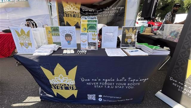 Matua Advisory Council, SF Tongans Rise Up, SALT Pacific Islander Association tables at the Tonga Day SF Bay Area! Festivities - many resource tables, Tongan cultural performances, pacific islander merchants, and yummy food. Pictured in photo, Asipesionau Finau and Faye Ia. |
