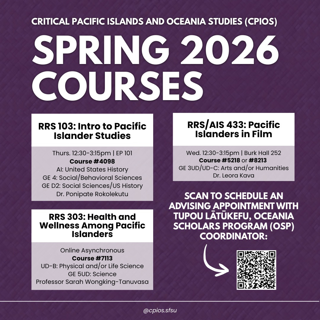San Francisco State University's Critical Pacific Islanders and Oceania Studies Spring 2026 courses are out for SFSU students! Enroll, enroll, enroll! |