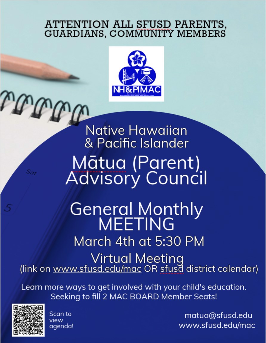 www.sfusd.edu/mac OR District Calendar OR Scan Agenda from flyer.